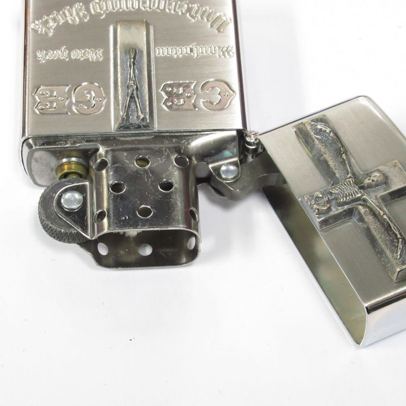 VIntage Zippo CBGB & OMFUG Logo Cross Skeleton Metal Silver Satena Plating Both Sides Etching Japan Limited Oil Lighter [8fy-000008]
